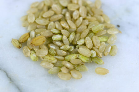 If you’d like to save rice for replanting next year, put some aside before removing the hulls; they’ll need to be intact for the seeds to germinate.