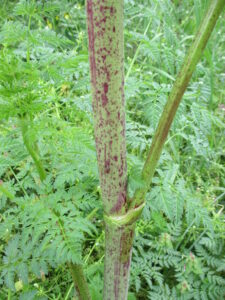 - Purple spotted Poison Hemlock stem. (Photo by Marcus McCartney)