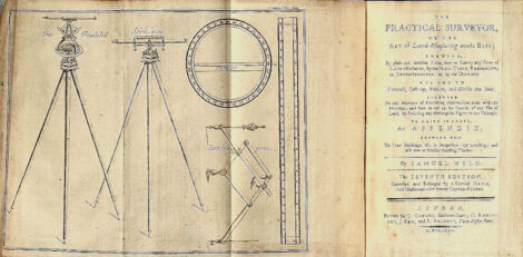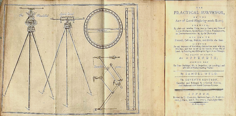 - (Photo provided from amphilsoc.org) Samuel Wyld surveying book published 1780: a 1679 edition was in George Washington’s library.