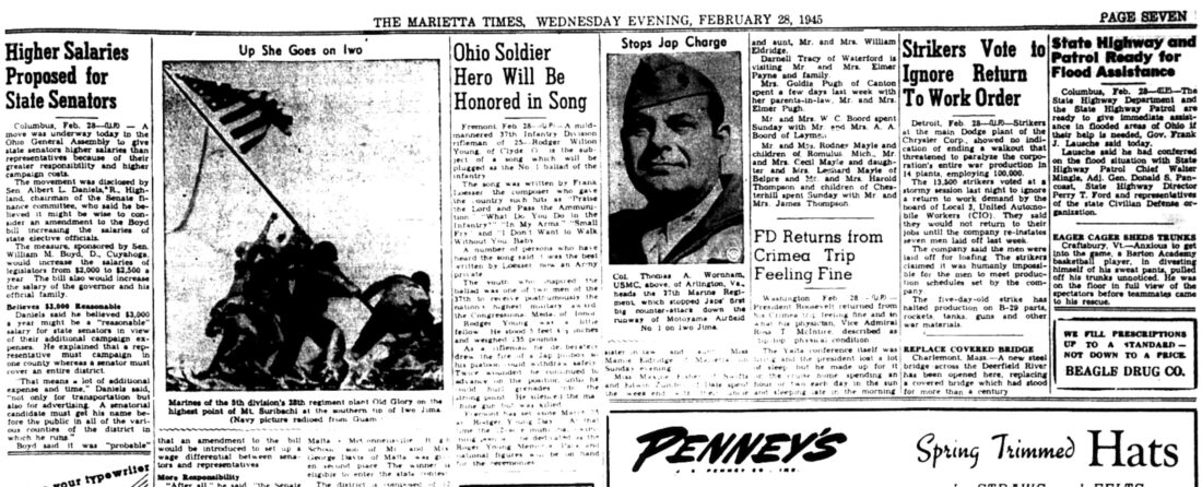 - (Photo provided) Joe Rosenthal’s photo as it appeared in The Marietta Times on Feb. 28, 1945.