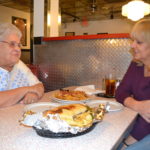 MICHAEL KELLY The Marietta Times Marilyn Young, left, and Kenita Venham visit over lunch at Jukebox Pizza in Waterford Friday.