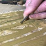 Bobby Rosenstock, co-owner of Just A Jar Design Press, hand-carves each layer of a wooden block to create a stamp-like impression on his handmade posters.
