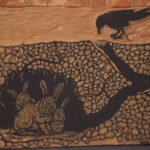 Design elements common in limited edition prints from Just A Jar Design Press Marietta include animals, wood textures, patterns and multiple colors.