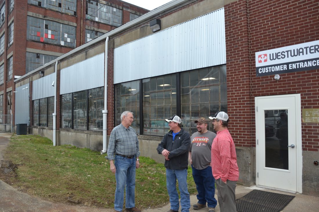MICHAEL KELLY The Marietta Times The crew from Westwater Supply – from left, Harold Ours, Ron Wagner, Steve Johnson and Mike Hamersley – stand outside the shop on Greene Street Friday. The business moved into a space in the northeast corner of the Remington-Kardex property last year.
