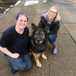 - Lucy Filipow (left) and Erica Chichester are shown with one of their customers, retired police dog Quick. (Photo Provided)