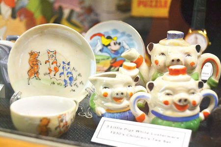- A 3 Little Pigs tea set is part of a Disneyana exhibit at the Children’s Toy and Doll Museum in Marietta. (Photo by Michele Newbanks)