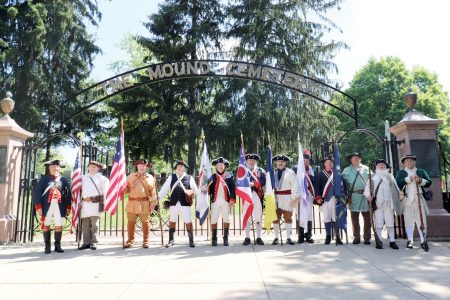 Ohio’s Sons of the American Revolution Color Guard Commander Robert Hill led the musket salute, and several different chapters laid down floral wreaths in honor of the buried soldiers. Honorary flags with names attached rippled in the wind.