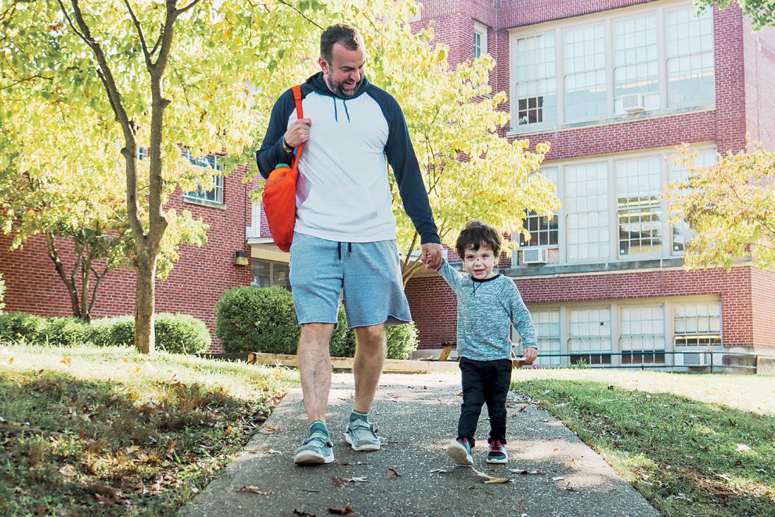MCS Parent Chris Fennell walks his PreK children to Washington Elementary School most days, setting his son and daughter up for success in the classroom.