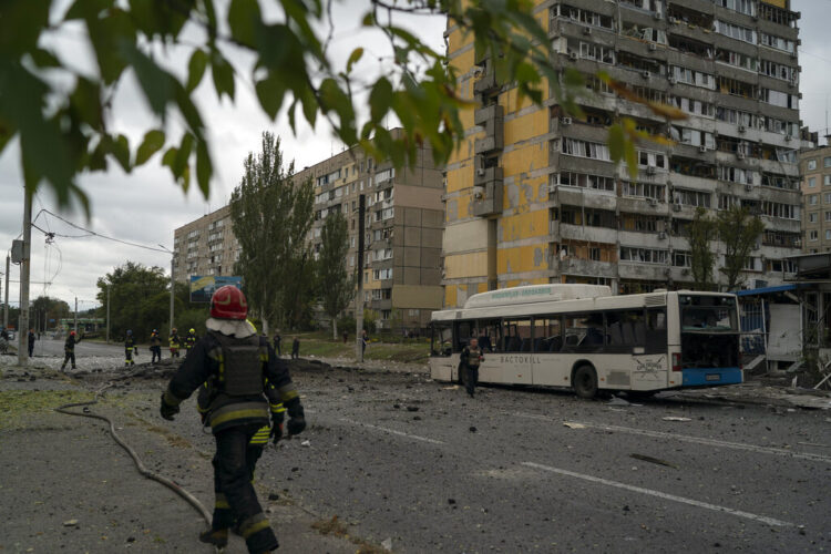 Associated Press journalists saw multiple bodies at an industrial site on the outskirts of Dnipro city. Four people were killed and 19 injured in the city, officials said.