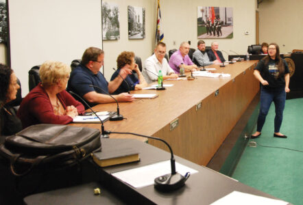 A number of people began to complain loudly, with one woman coming up to the council dais and placing a T-shirt that apparently featured explicit images from the book in front of Reynolds. Another woman began shouting, and Reynolds asked police to escort her out. She left before they did.