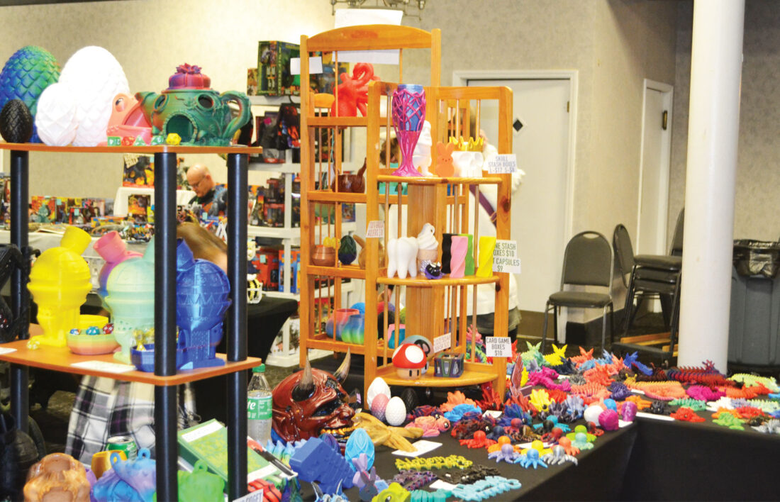 - Moriah Spencer sold 3D printed objects at Saturday’s Classic Plastics Toy Expo at the Parkersburg Art Center. According to Spencer, she’s been coming to the expo for the past two years. (Photo by Clara Noelle)