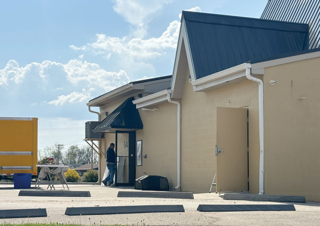 A JaniSource employee walks into Stoked Coffee at 302 Pike St. in Marietta on Monday afternoon to clean. According to the coffee shop’s Facebook post, they sustained significant water damage due to the flooding the week of April 2. (Photo by Michelle Dillon)