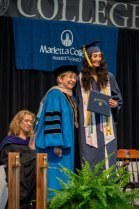 - Marietta College President Margaret Drugovich, left, poses with Auva Zandi of Dublin during Saturday’s 187th commencement ceremony at the Dyson Baudo Recreation Center. Zandi earned a bachelor of science degree in health science. (Photo provided)
