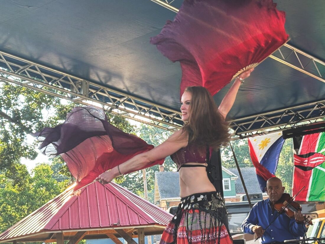 - Belly dancer Elizabeth Muise of Boom Boom Shake performs during the opening day of the Mid-Ohio Valley Multi-Cultural Festival Friday evening. (Photo by Michelle Dillon)
