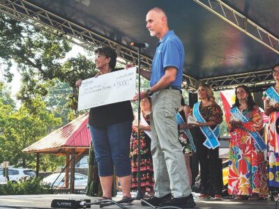 During the ceremony, FirstEnergy Corp. Regional External Affairs Consultant Jame Connor, presented festival co-founder Bea Corra with a donation for $5,000.