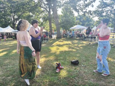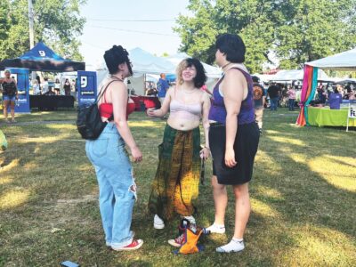 - Dunbar, W.Va., resident Jhaisy Richardson, left, Nitro, W.Va. resident Calabria Simmons, center, and Parkersburg resident Olli Douglas talk and laugh during the Mid-Ohio Valley Multi-Cultural Festival Friday night. (Photo by Michelle Dillon)