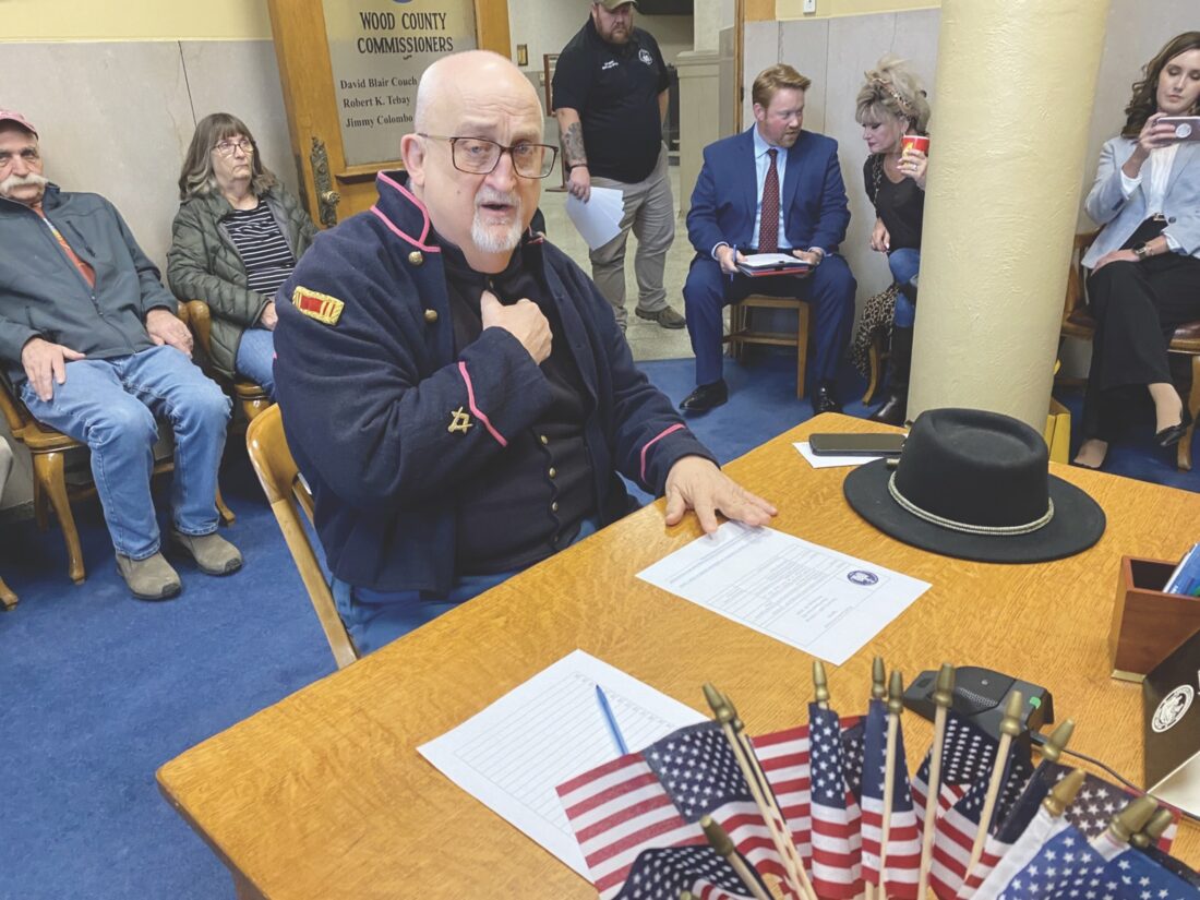 Jim Miracle of Carlin’s Battery D, a county-sanctioned Civil War re-enactment group, appeared before the Wood County Commission this week.