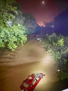 “We’re searching the banks, we’re searching submerged vehicles, any debris we find along the trail and so forth,” Blazier said. “We’re using drones, search dogs and swift water personnel, and we have teams organized that are searching sectors that we’re trying to recover anybody that’s missing.”