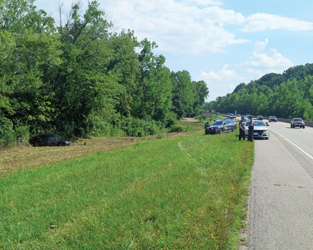 - Ohio State Highway Patrol vehicles and troopers are seen along Ohio 7 after a pursuit that began in Athens County and ended north of Belpre. (Photo by Evan Bevins)