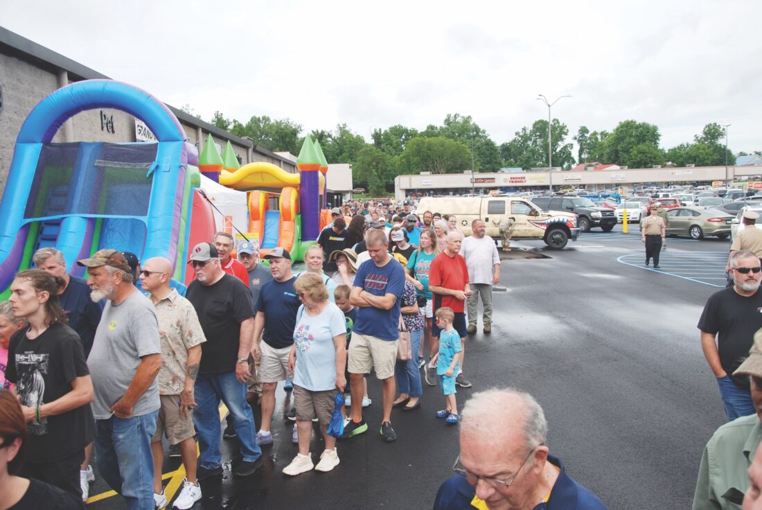 Hundreds of people lined up to enter the store, which offers farm supplies, lawn and garden equipment, lumber, guns, bows and more.