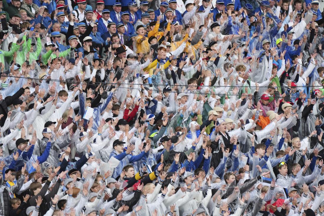 The Song Festival Grounds, a massive outdoor venue in the Estonian capital Tallinn, was filled with spectators Saturday evening despite the downpour, and absolutely packed on Sunday, with even more people attending. The traditional Song and Dance Celebration, which decades ago inspired resistance to Soviet control and was later recognized by the U.N.’s cultural agency, attracted tens of thousands of performers and spectators alike, many in national costume.