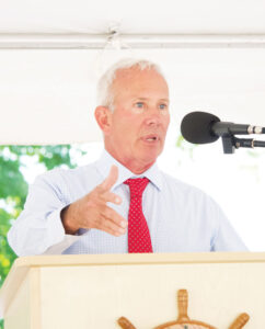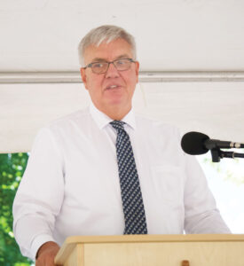 - (Photo by Gage Vota) John Carey, director of the Office of Appalachia, speaks at a groundbreaking for the new Appalachian ECOTONE riverfront amphitheater and trails in Sardis where he said a goal of the Appalachian Community Grant Program is to attract travelers to come to Appalachian communities in Ohio.