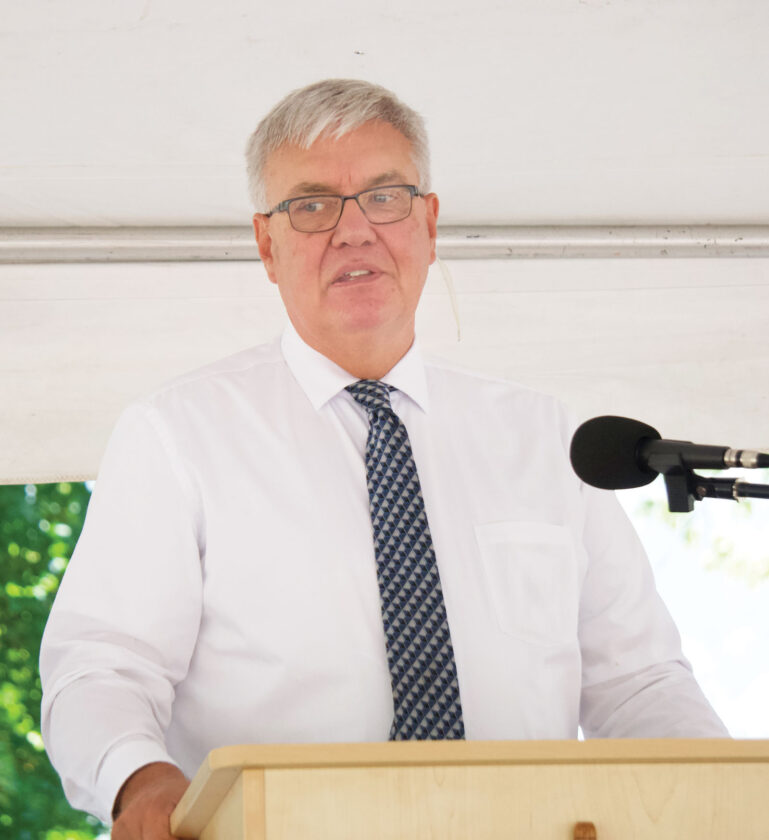 - (Photo by Gage Vota) Monroe County Commissioner Mick Schumacher expresses his excitement for the groundbreaking of the Appalachian ECOTONE riverfront amphitheater and trails on Friday. The $4.4 million project is located on Ohio 7 in Sardis.