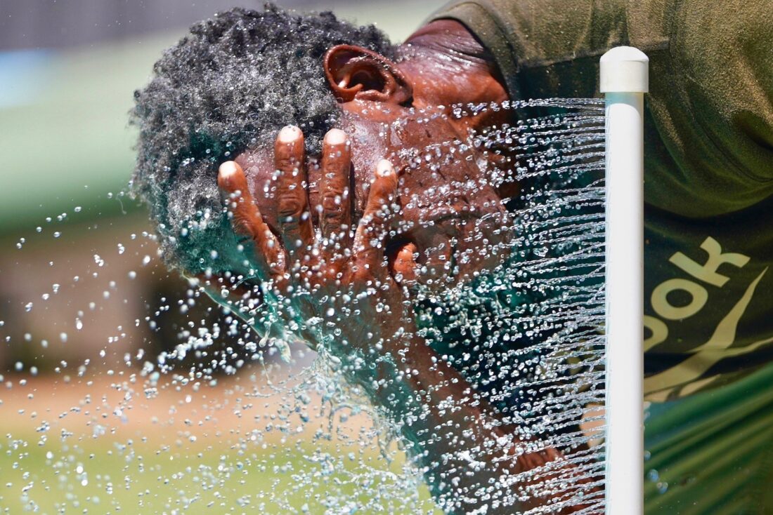 - FILE – Paul Williams cools off in water while taking a break from yard work in Richardson, Texas, July 31, 2025. (AP Photo/LM Otero, File)