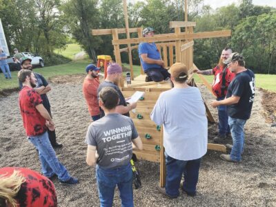 The project was done in partnership with the nonprofit Roc Solid Foundation which supplies play sets to kids undergoing cancer treatments, said Danny Miller, production manager for Cornerstone Building Brands’ Ritchie County plant.