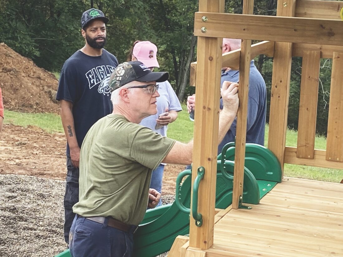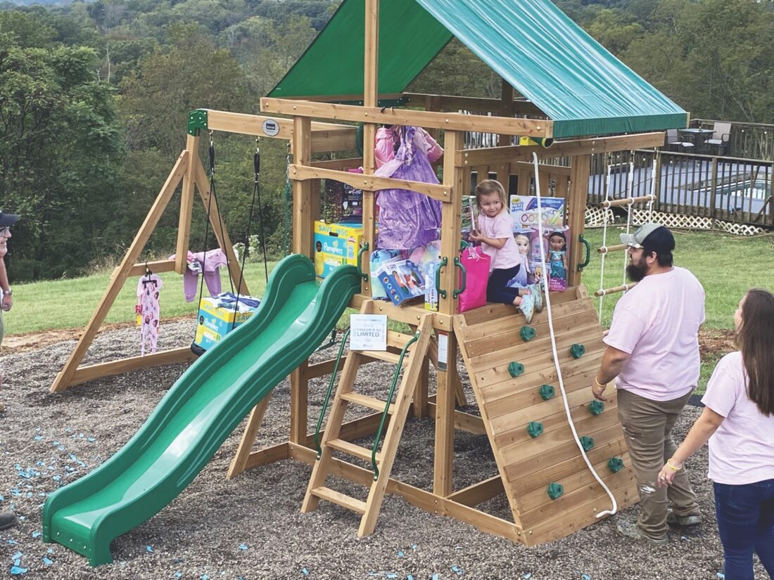 WASHINGTON, W.Va. — A young girl will be enjoying some time outside as she nears the end of her cancer treatment as a group of volunteers erected an outdoor playset Friday at her family’s Lake Washington Road home.