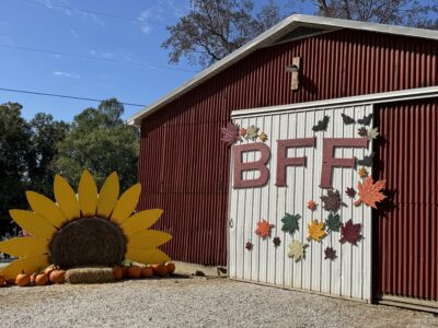 One of the many photo-ops throughout the Butcher Family Farm that are perfect for group photos.