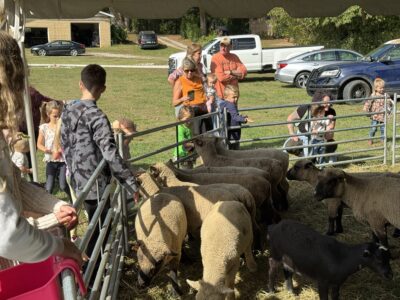 - Photo by Amber Phipps A group of kids at the Butcher Family Farm feeds sheep and goats during Family Fun Day on Saturday.