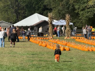 - Photo by Amber Phipps A child runs toward the pumpkin patch during Family Fun Day at the Butcher Family Farm on Saturday.