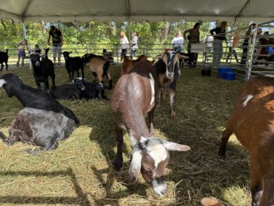 - Photo by Amber Phipps Goats approach the fence looking for morsels to eat during Family Fun Day at the Butcher Family Farm on Saturday.