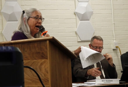 - Marietta resident Dawn Hewitt states her concerns regarding injection wells in the region during Thursday night’s Marietta City Council meeting. (Photo by Gwen Sour)