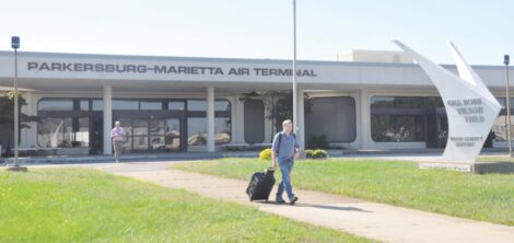 - A passenger walks away from the terminal at the Mid-Ohio Valley Regional Airport on Oct. 1. (Photo by Evan Bevins)
