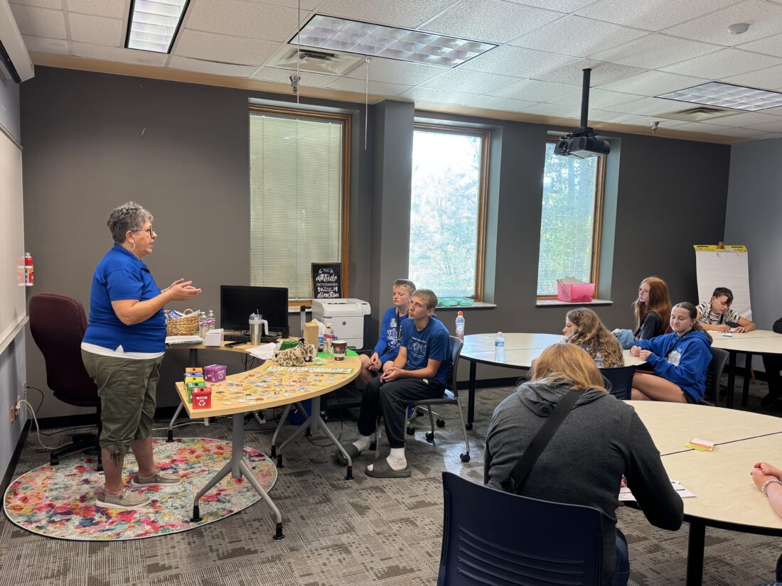 - Southeast Ohio Joint Solid Waste Management District Educator Wanda Schaad teaches environmental education to seventh graders from Warren Local during Y.E.S. Days on Tuesday. (Photo by Amber Phipps)