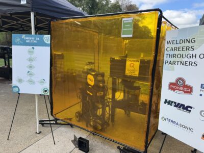 Appalachian Ohio Manufacturers’ Coalition welding station which demonstrates welding for the seventh graders at Washington State College of Ohio’s Y.E.S. Days on Tuesday. (Photo by Amber Phipps)