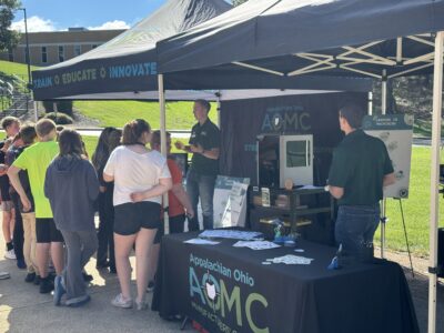 - Appalachian Ohio Manufacturers’ Coalition Intern Jaden Martin teaches seventh graders about the company and its advanced technology during Washington State College of Ohio’s Y.E.S Days on Tuesday. (Photo by Amber Phipps)