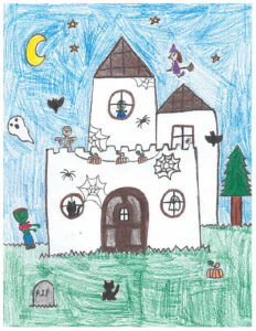 - Artwork – 2nd Place: “The Scary House with a Broom” by Aubrey Heiss, St. Mary’s Catholic.
