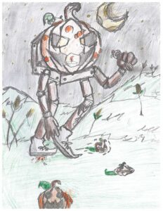 Artwork - 2nd Place: “The Great Pumpkin’s Rampage” by Lyric Boyd, Hamilton Middle School.