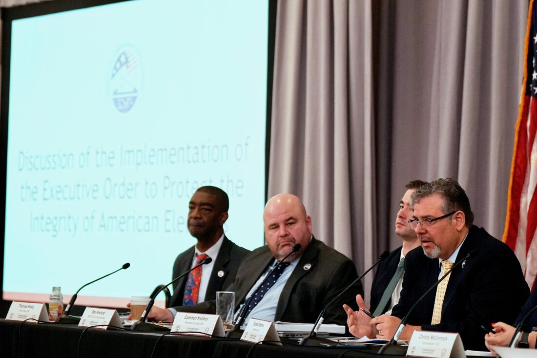 - FILE – Commissioner Donald Palmer speaks during a U.S. Election Assistance Commission Standards Board public meeting April 24, 2025, in Charlotte, N.C. (AP Photo/Chris Carlson, File)