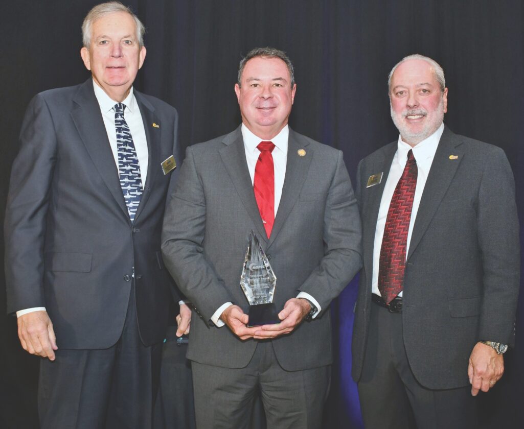 Photo Provided Ohio Sen. Brian M. Chavez, R-Marietta, center, received the first Energy Champion Award from the Northeast Ohio Petroleum Council. Chavez was among four recipients to receive the award. From left are Dr. William Koons, chairman of the council, Chavez and Chuck Keiper, CEO and executive director of the Petroleum Council. (Photo provided)