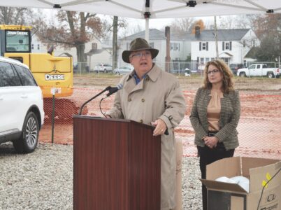 - Andy Neptune, executive director of the School Building Authority of West Virginia, speaks to a crowd Tuesday during a groundbreaking event for the new Lincoln Elementary. (Photo by Douglass Huxley)