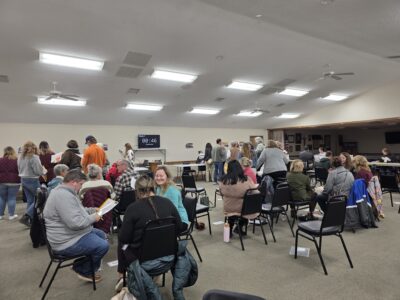 - Attendees at the Cost of Poverty Experience are separated into family units to work together to understand how to survive under a myriad of limitations, including child care, finances, ability and food access. (Photo by Gwen Sour)