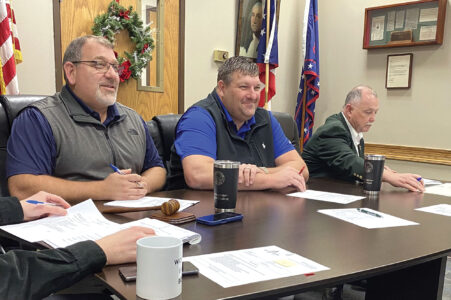 From left, Washington County Commissioners Charlie Schilling, Eddie Place and Greg Nohe unanimously approved the over $25 million 2026 appropriations budget during a meeting Wednesday. Photo by Brett Dunlap
