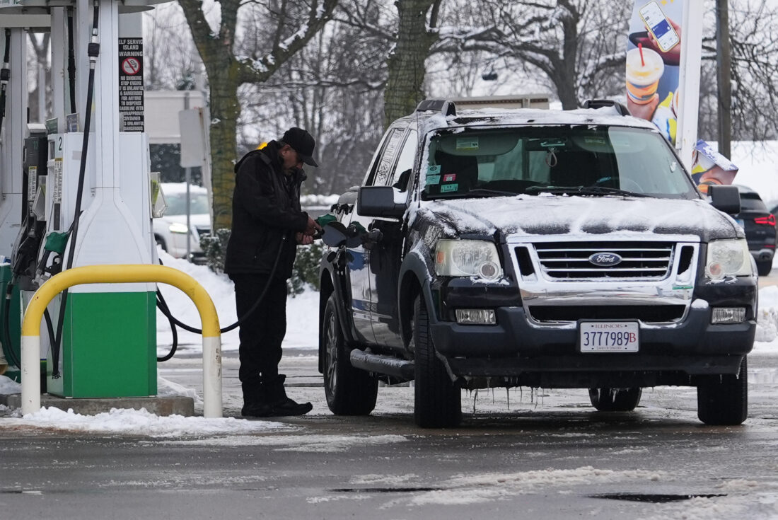 A person fills up a vehicle's gas tank in Northbrook, Ill., Tuesday, Dec. 2, 2025. (AP Photo/Nam Y. Huh)