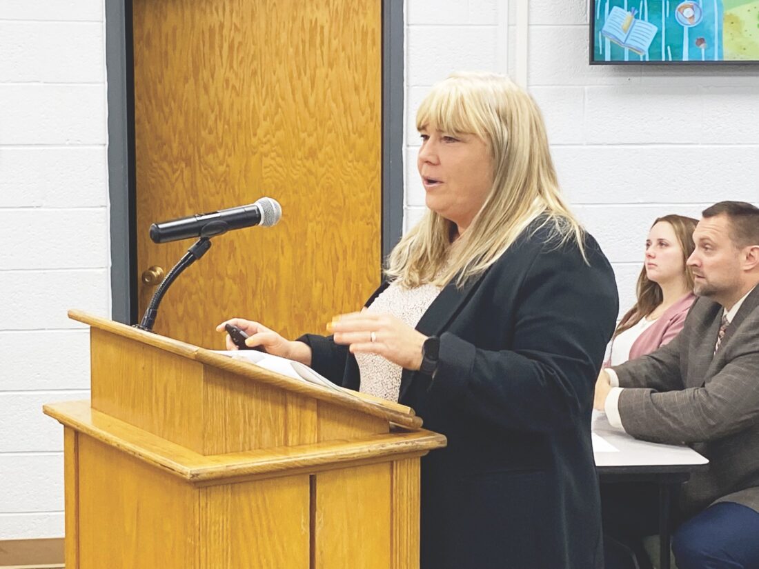 Wood County Schools Director of Elementary Education Heather Grant gave a presentation on the proposed 2026-27 school calendar before the Wood County Board of Education Tuesday night. (Photo by Brett Dunlap)
