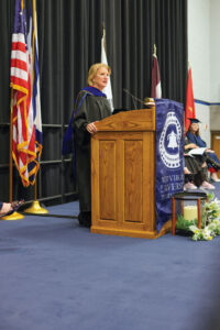Torie Jackson, president of WVU Parkersburg, congratulated graduates and reminded them their degrees represent hard work and determination, but the impact will be defined by the relationships they build moving forward.