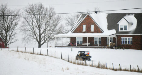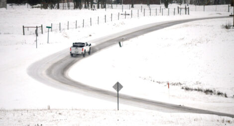 (Photo by Art Smith) A family in a side-by-side travel a snow-covered Klinger Road Sunday morning.